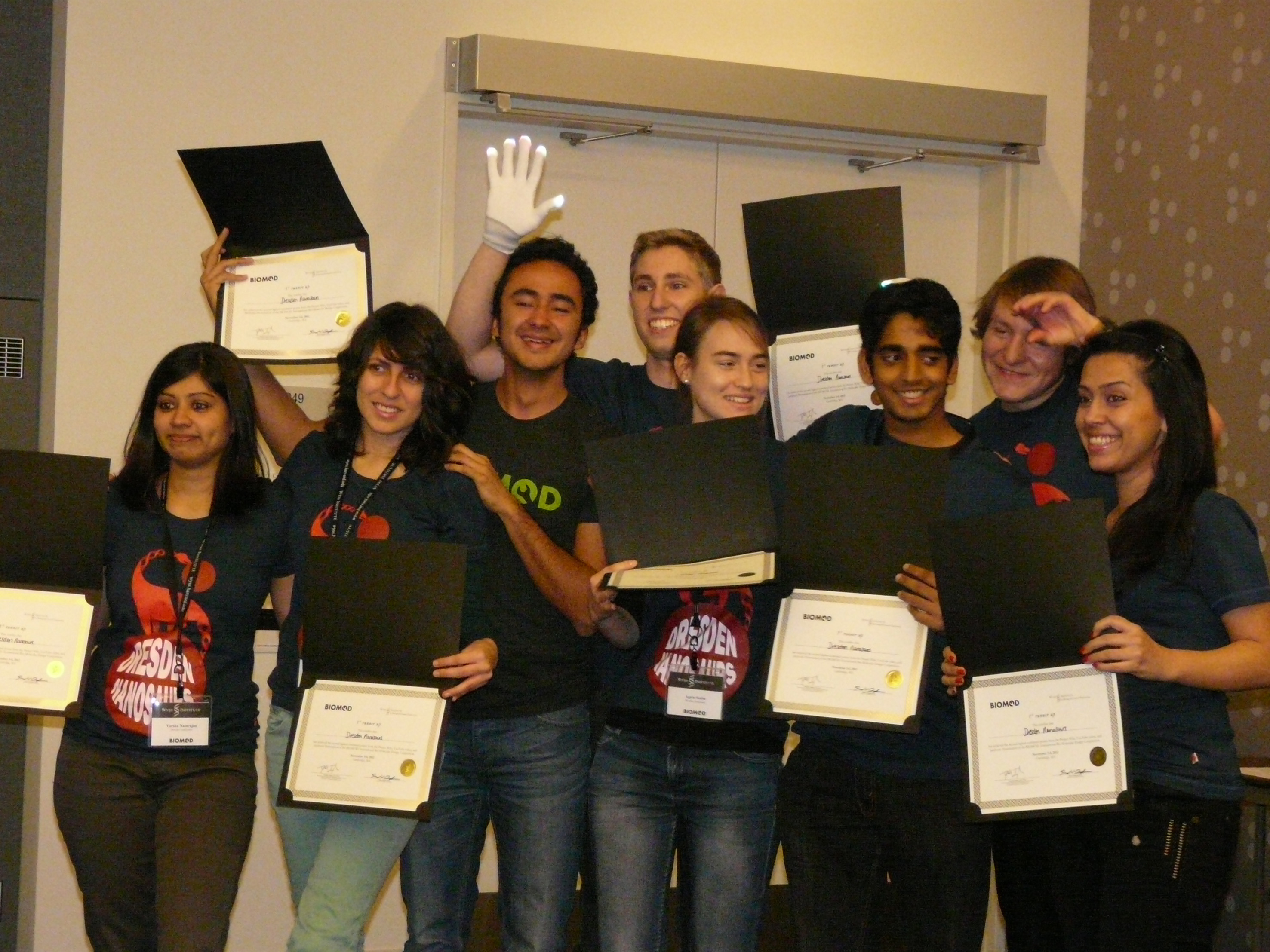 Studenten des Teams „Dresden Nanosaurs“ bei der Preisverleihung