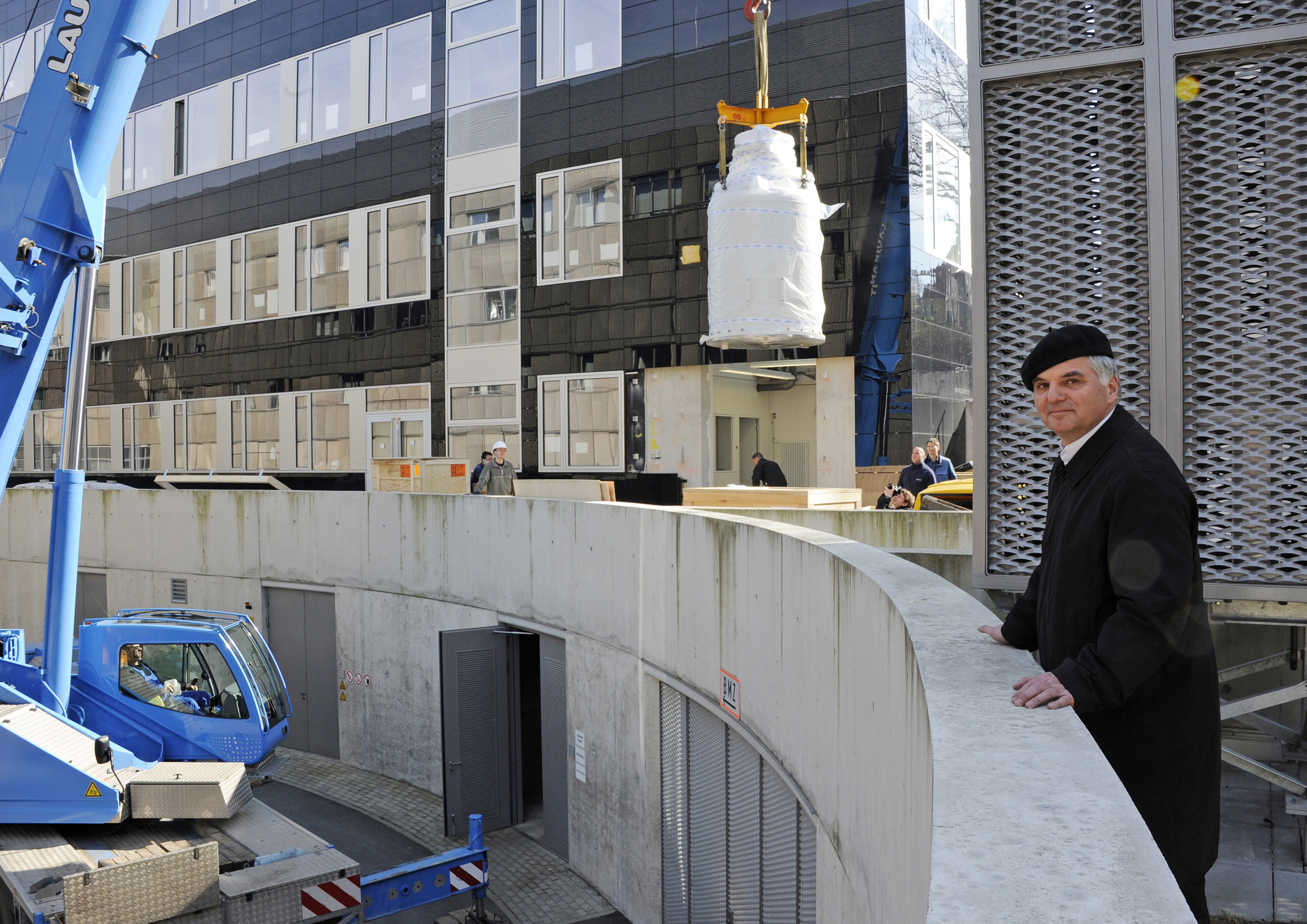 und vor das neue Labor im Walther-Hempel-Bau gehoben
