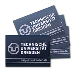 blau-silber Metalloptik, mit Internetadresse der TU