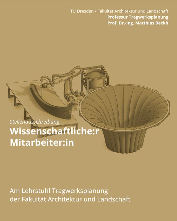 Die Professur für Tragwerksplanung sucht ab 01.01.2026 engagierte Mitarbeiterinnen / engagierte Mitarbeiter zur Verstärkung des Teams!