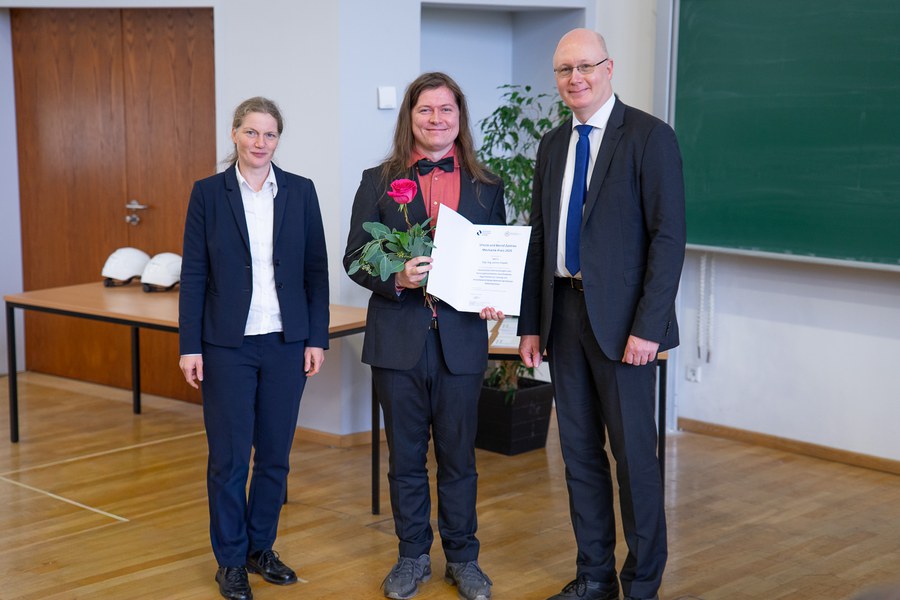 Der Johann-Ohde-Preis wird an der TU Dresden für hervorragende Projekt- und Diplomarbeiten, im Fach Geotechnik verliehen. Der Preis wird von der BAUER Spezialtiefbau GmbH gestiftet.Den Preis überreichte Herr Dr.-Ing. Patrik Wenzl, BAUER Spezialtiefbau GmbH