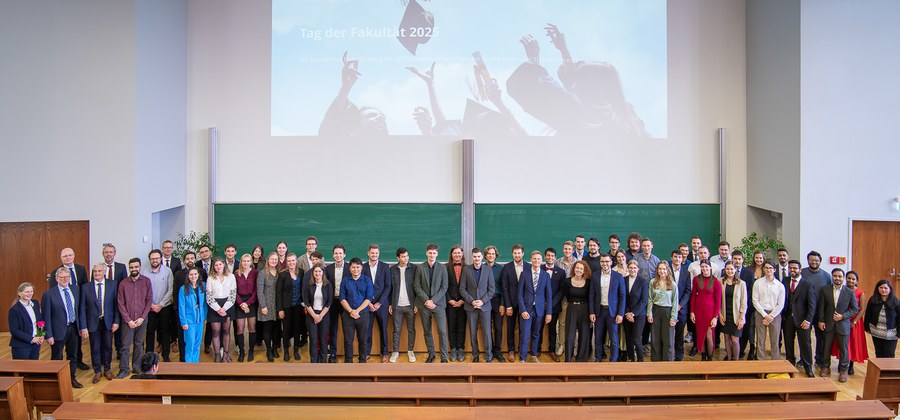 Am 24.Oktober wurden zum Tag der Fakultät Bauingenieurwesen unsere diesjährigen Absolventinnen und Absolventen feierlich verabschiedet. Zahlreiche Professorinnen, Professoren und Mitarbeitende der Fakultät fanden sich am Nachmittag im Hörsaal POT 81 im Potthoff-Bau ein, um gemeinsam mit den Absolventinnen und Absolventen sowie deren Angehörigen den Abschluss des Studienjahres 2024–2025 zu feiern. Traditionell wurden dabei auch besondere Auszeichnungen für herausragende Studienleistungen verliehen.