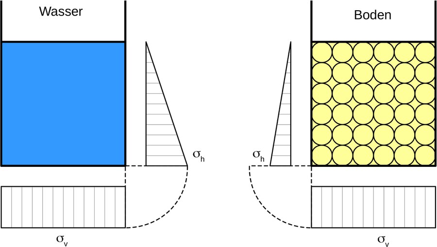 Für die Berechnung von Setzungen oder die Ermittlung von Erddruckkräften auf eine Stützmauer bedarf es der Bestimmung der Spannungsverteilung im Boden. Im Gegensatz zu vielen anderen Baustoffen ist das Verhalten zwischen Spannung und Dehnung nicht-linear. Dieser Aspekt ist bei der Berechnung von Setzungen von großer Bedeutung.
