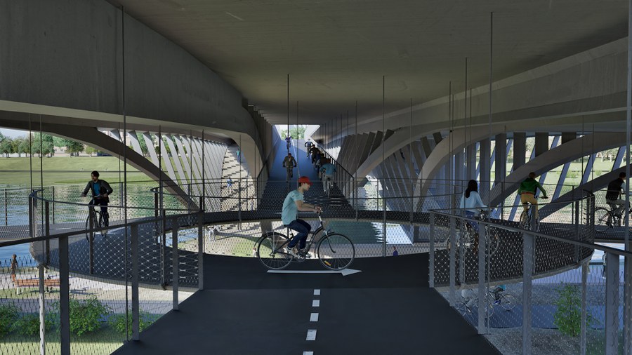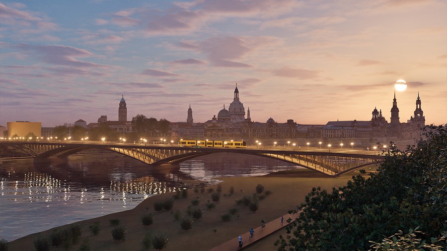 The design takes up Dresden's arch bridge tradition and translates it into the modern age. This creates many links to the neighboring bridges and the historic Carola Bridge. The sloping outer surfaces of the arch lend the structure both elegance and lightness, allowing it to blend harmoniously into the Elbe landscape. "The bridge offers something for everyone - a connection that is not only functionally convincing, but also inspiring in terms of design," said the jury. With its bold approach, which deliberately goes beyond the urban requirements, the design demonstrates an attitude that combines innovation with respect for Dresden's building culture. The bridge itself thus becomes a new landmark and makes a lasting impression on Dresden's attractive cityscape.