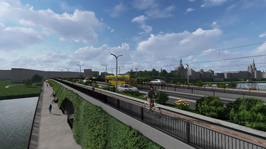The functional division of the bridge for the individual types of traffic or a possible combination is to be worked out freely. The usable widths to be applied can be sensibly and justifiably adjusted as part of the planning process. Existing development studies by the city of Dresden on the design of the Königsufer and St. Petersburger Straße can be taken into account. The structure and the transition to the banks of the Elbe must be designed to be barrier-free. The bank area below the structure may be freely planned. The entire structure must be provided with adequate and attractive lighting.