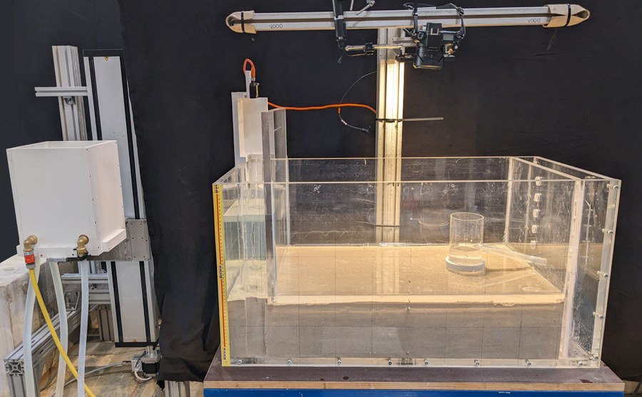 Foto des experimentellen BEP- Versuchsaufbaus im Wasserbaulabor der TU Dresden © M. Wewer / IWD