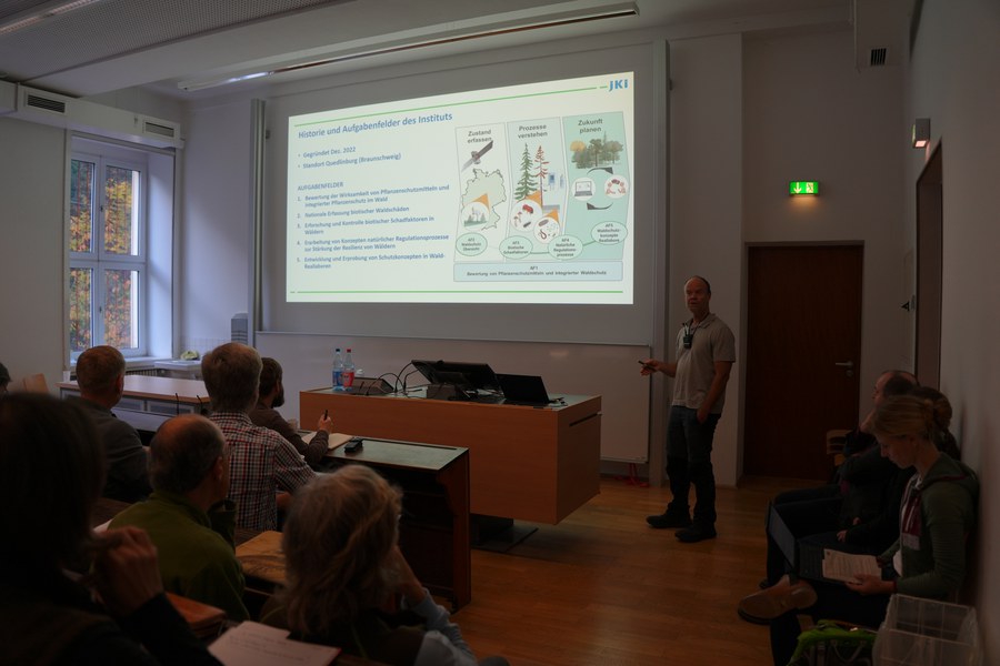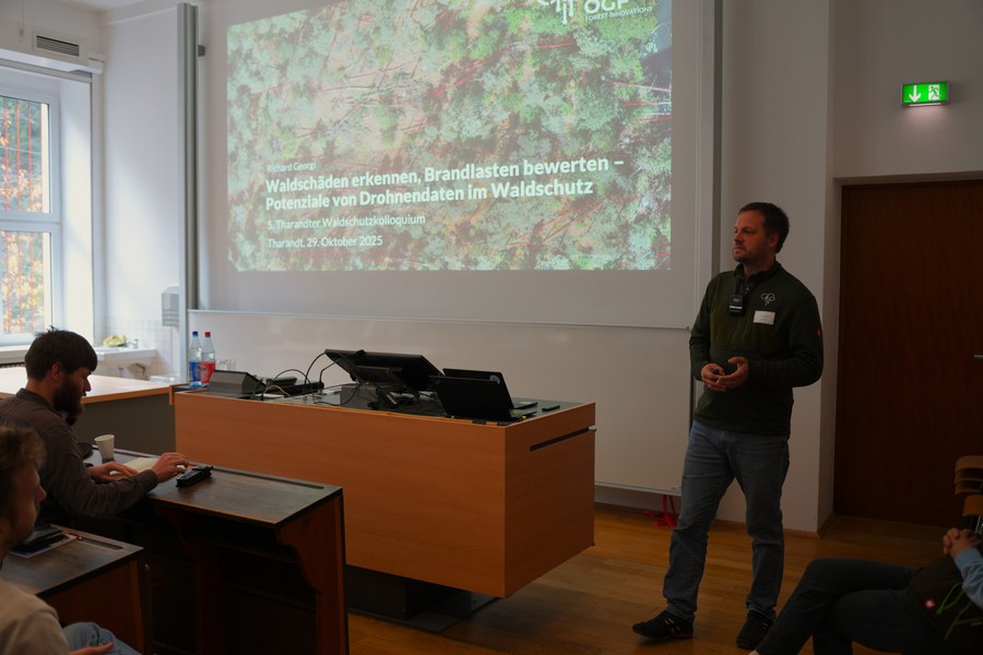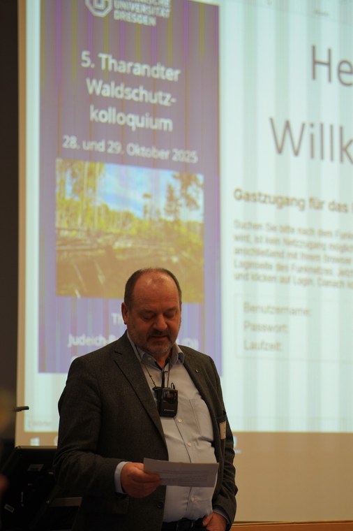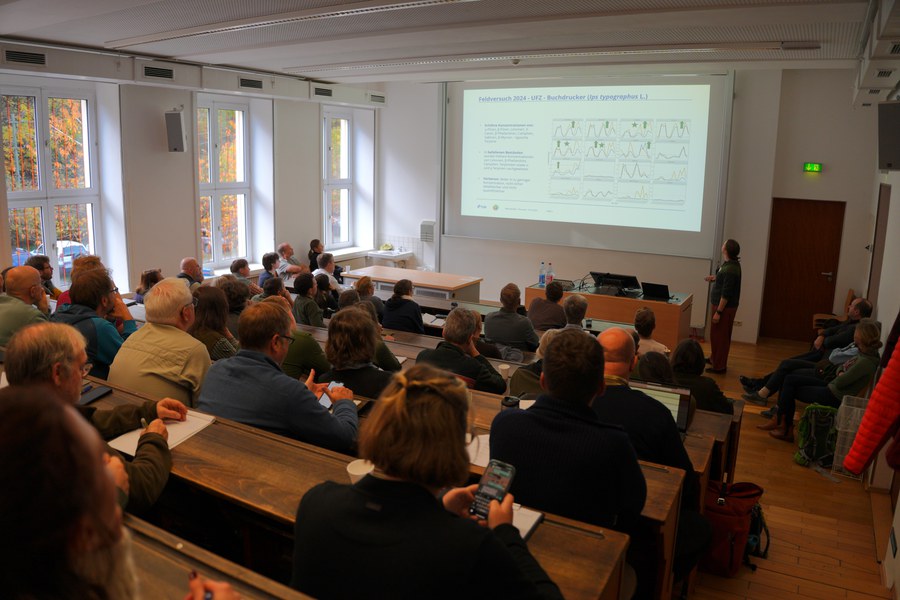 Nach einer dreijährigen Pause fand am 28. und 29. Oktober 2025 die fünfte Ausgabe des Tharandter Waldschutzkolloquiums statt, welche vor allem eine Bühne für externe Waldschutzfachleute und aktuelle, praxisrelevante Themen bieten sollte. Dementsprechend vollgepackt war das Programm, dessen Spektrum von insektenbürtigen Schadorganismen über klimatische und waldbauliche Herausforderungen bis hin zu Fragen des Waldbrandschutzes und innovativer Monitoringmethoden reichte.