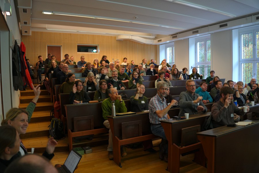 Die rund 130 Teilnehmerinnen und Teilnehmer kamen aus zwölf Bundesländern sowie aus Österreich und repräsentierten eine große Vielfalt an unterschiedlichen Institutionen, darunter Landes- und Stadtforstbetriebe, Landratsämter und Stadt- und Nationalparkverwaltungen, Forschungsanstalten, Universitäten, Ministerien, private Unternehmen und eine Feuerwehr. Diese Vielfalt spiegelte sich auch in den intensiven Diskussionen und im lebhaften fachlichen Austausch an beiden Tagen wider.