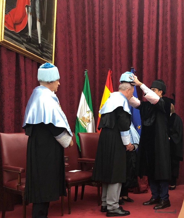 In seiner Laudatio würdigte Dr. Fernando Diaz del Olmo, Leiter des Geographischen Institutes der Universität Sevilla und Pate bei der Ehrung Prof. Faust als international anerkannten Spezialisten in Forschung und Lehre der Bereiche Physische Geographie, Geomorphologie, Bodenkunde, Geoarchäologie und Quartärstratigraphie. Er bezeichnete dies als Themen und Forschungsrichtungen, die ausgehend von der Geographie als zentraler Disziplin ihre multidisziplinären Inhalte sowohl mit den Geowissenschaften als auch mit den Geisteswissenschaften teilen. Er nannte Prof. Faust „von nun an Teil der institutionellen Geschichte der Physischen Geographie der Universität Sevilla“ und dankte ihm für seine erbrachte Leistung bei der Ausbildung von Studierenden und Forschenden an der Universität.
