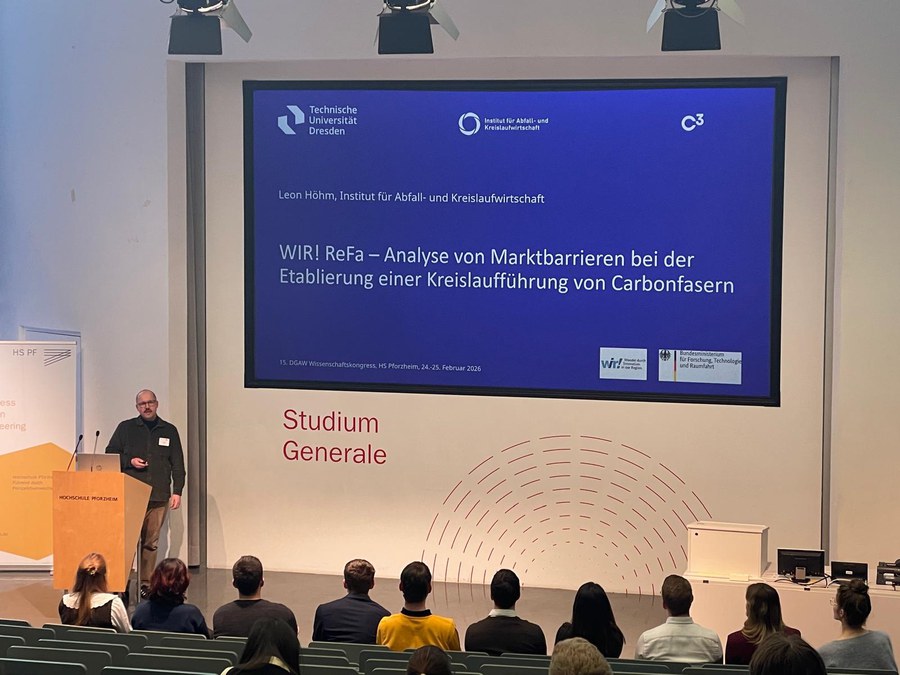 Leon Höhm speaks at the 15th DGAW Science Congress in February 2026 in Pforzheim about the results of the WIR! project.