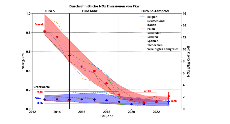 - Seit Straßentests (real-driving tests) mit Euro 6d-TEMP verpflichtend sind, sind die NOx-Emissionen neuer Diesel-Pkw so niedrig, wie vorgesehen. Diese Änderung der EU-Abgasgesetzgebung war überfällig und erfolgreich.