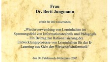 - Dr. Feldbausch Förderpreis 2005 für die Dissertation von Frau Dr. Jungmann