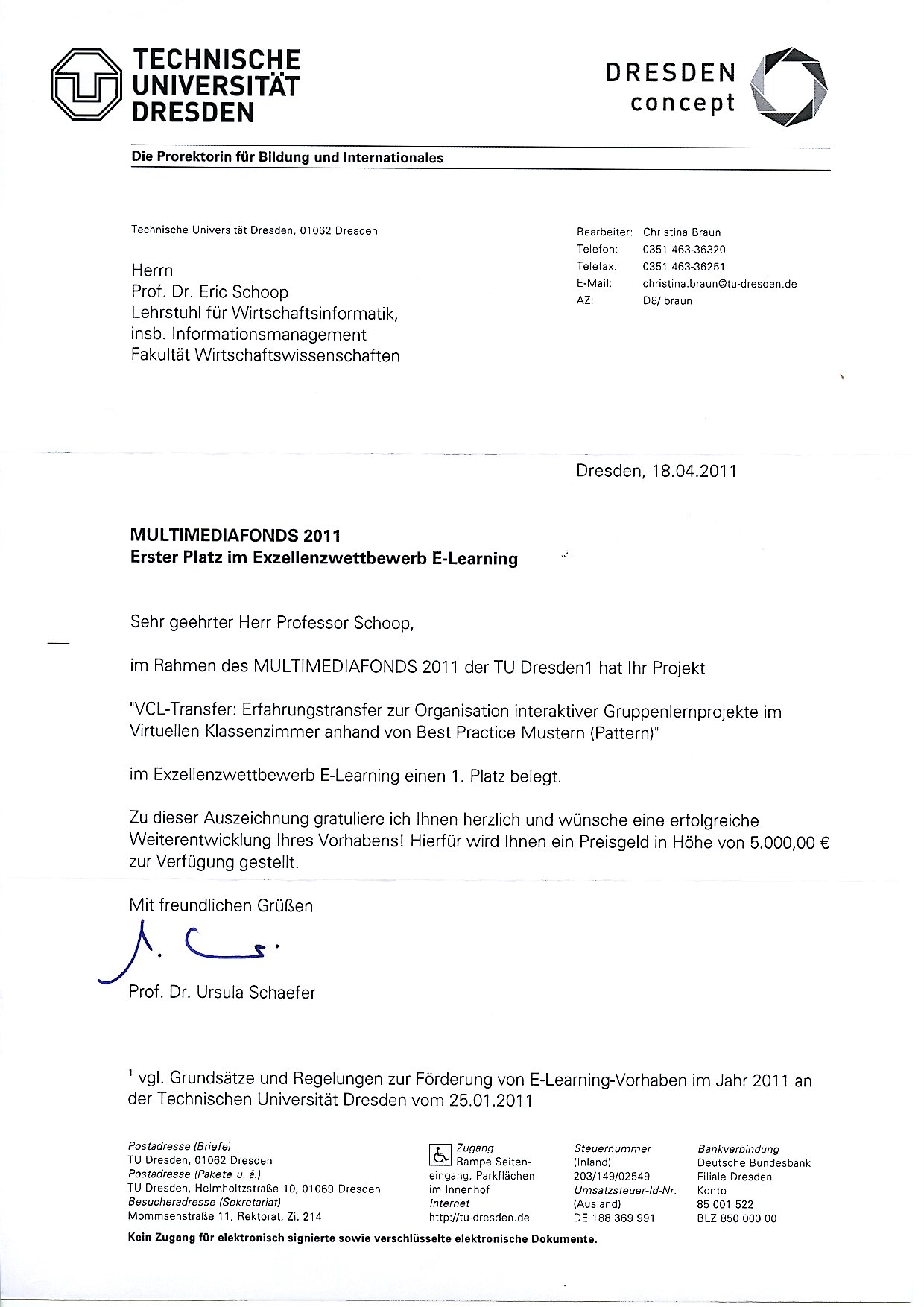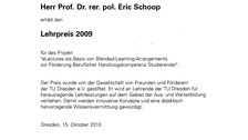 - Lehrpreis der TU Dresden 2009 für Prof. Dr. Schoop