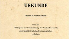 - Förderpreis zur Unterstützung der Auslandskontakte der Fakultät Wirtschaftswissenschaften der TU Dresden 2013 für Wissam Tawileh