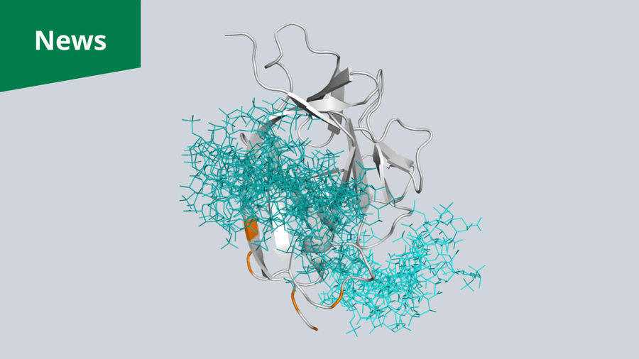 Molekülstruktur von IL-1α (in Grau) in Bindung an verschiedene Glykosaminoglykan-Moleküle (in Cyan)