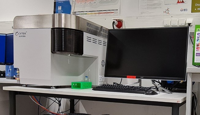 - 5 lasers: UV (349nm), Violet (405nm), Blue (488nm), Yellow-Green (561nm), Red (637nm)