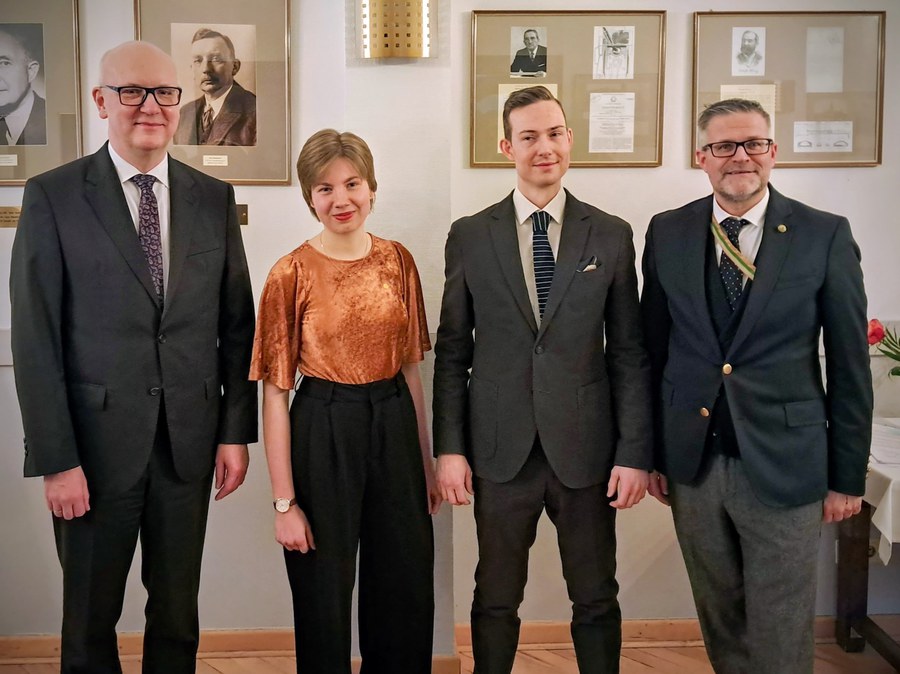 Dr. Ekaterina Vorobevskaia, Dipl.-Ing. Maximilian Froitzheim, Prorektorin Forschung und Sven Spielvogel bei der Verleihung des Georg-Helm-Preises am 8. Februar 2025.