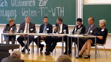 The thematically linked panel discussion was led by Dipl.-Päd. Dana Frohwieser. Mr. Bechstädt (Advisor Saxon State Ministry of Culture), Prof. Dr. Hartmann (Professor at Martin Luther University Halle-Wittenberg), Mr. Kunz (Technical Advisor WTH SBA Chemnitz), Mr. Hammerschmidt (Headmaster Waldblick-Oberschule Freital-Niederhäslich), Mr. Pöche (Student WTH) and Mr. Rokasky (Managing Director AMS Ausbildungsgesellschaft für Metalltechnik und Schweißer mbH) took up exciting and discussion-stimulating questions. The audience was also eager to participate in the concluding discussion round.