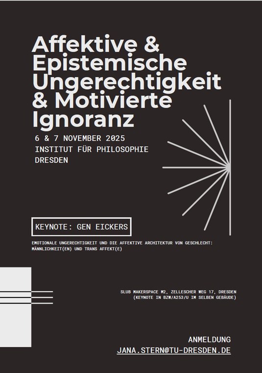 Der Workshop bringt Forschende in den Bereichen der affektiven und epistemischen Ungerechtigkeit sowie motivierten Ignoranz in Dialog. Sowohl zu den pre-read Slots als auch zur Keynote sind alle Interessierten herzlich eingeladen!