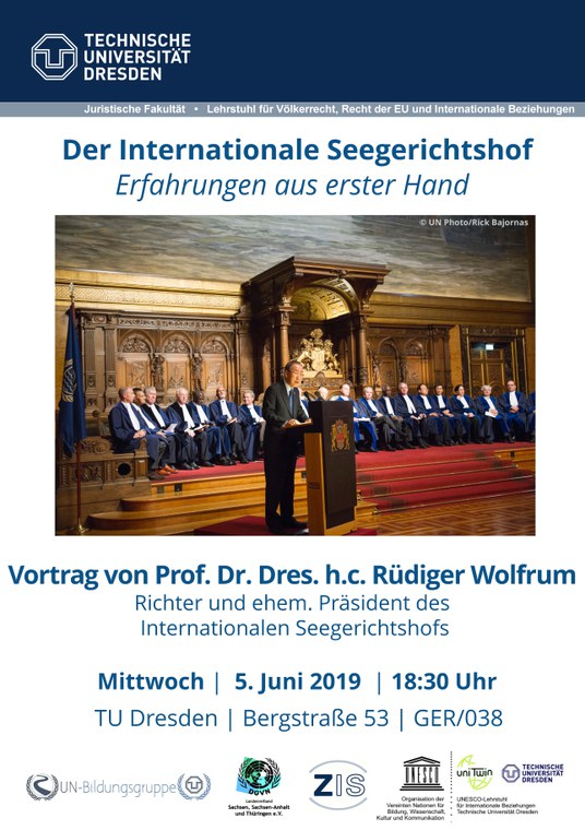 Mit Prof. Dr. Dres. h.c. Rüdiger Wolfrum kommt ein international hochangesehener Völkerrechtler nach Dresden, der von ganz persönlichen Eindrücken aus seiner Zeit als Präsident und langjähriger Richter des Internationalen Seegerichtshofs in Hamburg erzählen und einen Blick hinter die Kulissen gewähren wird.