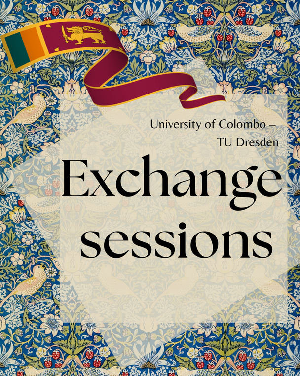 Die Exchange Sessions sind Networking- und Support-Sessions für das ISAP-Austauschprogramm zwischen der TU Dresden und der University of Colombo. Gemeinsam mit Austauschstudierenden aus Colombo werden hier die kulturellen Hintergründe Sri Lankas und Deutschlands erkundet. Die Exchange Sessions bieten Einblicke in Geschichte, Kultur und Traditionen, den Alltag und das Studierendenleben, aktuelle politische und soziale Themen und vieles mehr. Die Einschreibung erfolgt über OPAL.