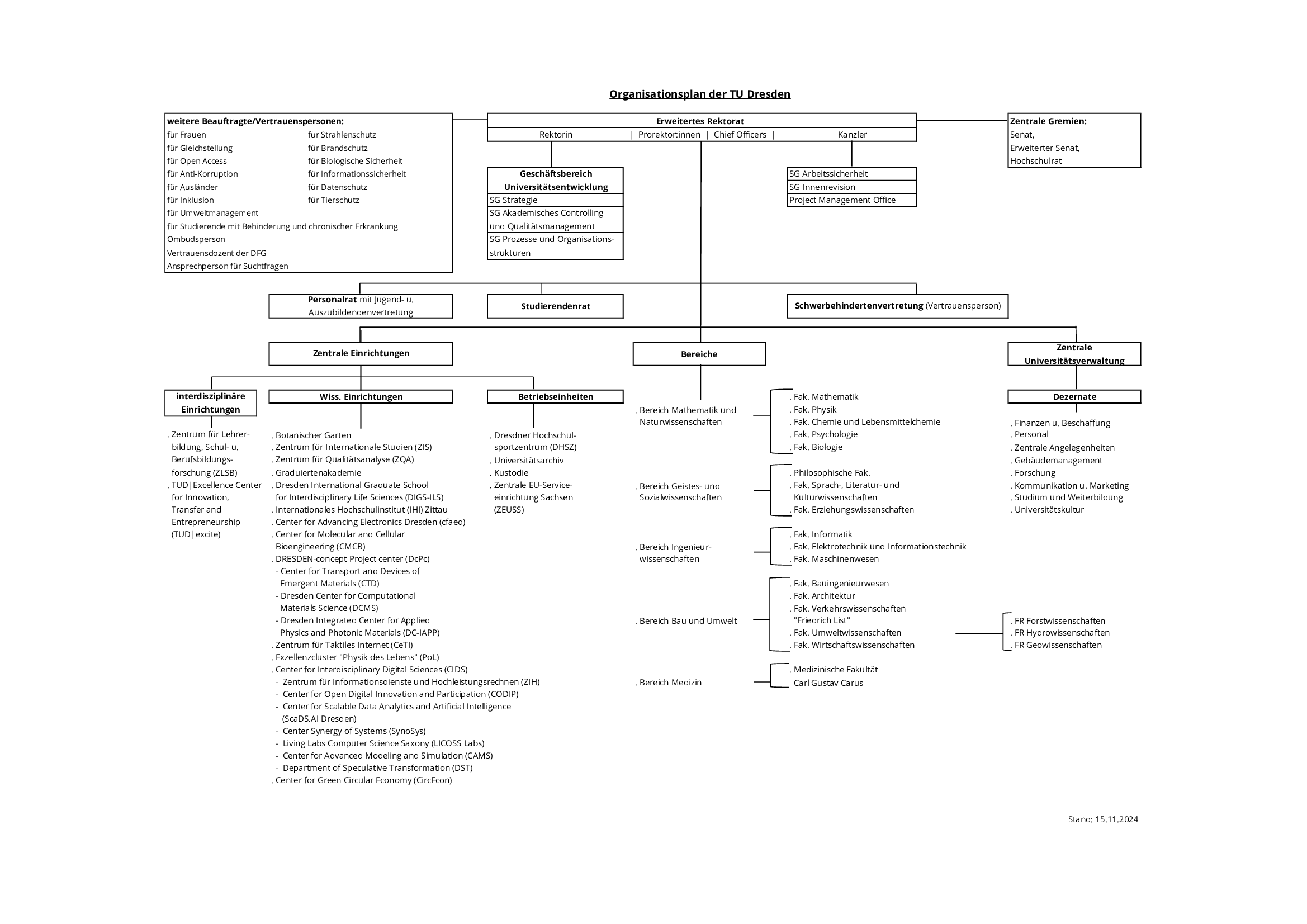 Der Organisationsplan der TU Dresden gibt einen Überblick über die wissenschaftliche und verwaltungsseitige Struktur der TU Dresden. Auf dieser Seite besteht die Möglichkeit, diesen Organisationsplan als GIF-Bild oder PDF-Dokument zu betrachten bzw. zu drucken.