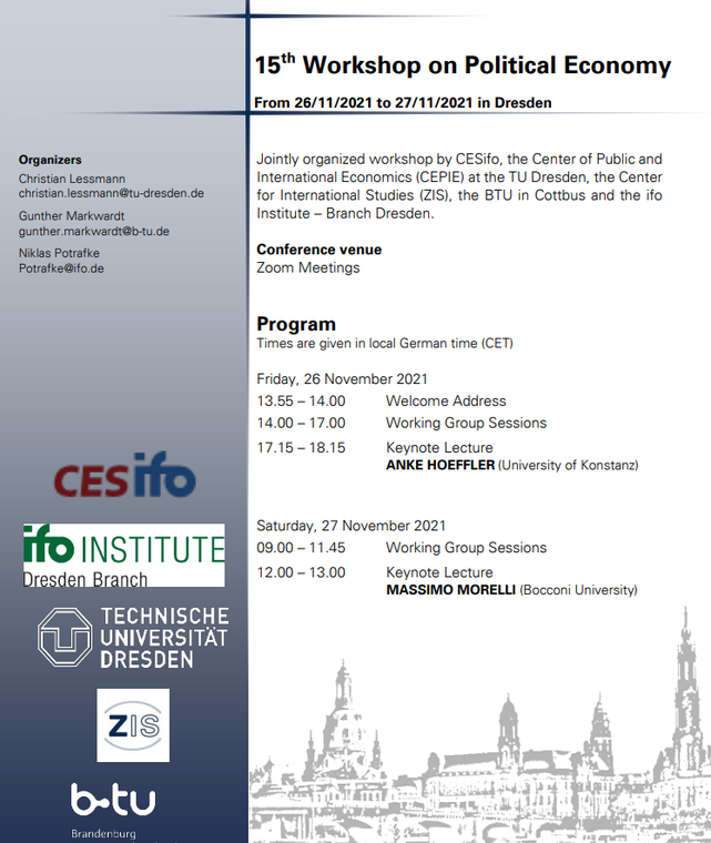 Programme of the 15th Workshop on Political Economy