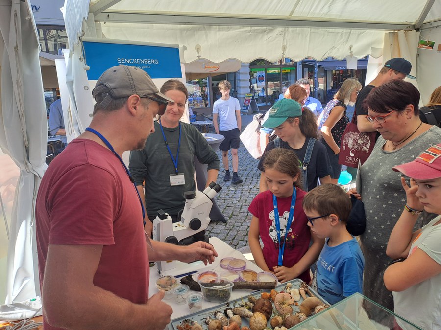 One of the most popular stands was shared by the IHI Zittau of TU Dresden and the Senckenberg Museum of Natural History with numerous exciting exhibits on the topic of regional biodiversity. Dr. Alexander Karich and Dr. René Ullrich had brought along a freshly "harvested" extensive mushroom collection, which was met with great interest by families and mushroom enthusiasts.