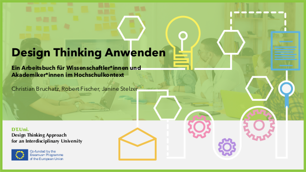 Für die Zielgruppe WissenschaftlerInnen und AkademikerInnen wurde didaktisches Material in einem Buch zusammengefasst, um praktische Unterstützung in der Anwendung von Design Thinking zu bieten. Das Buch ist auf deutsch (sowie auf englisch) als kostenfreies eBook hier herunterladbar.