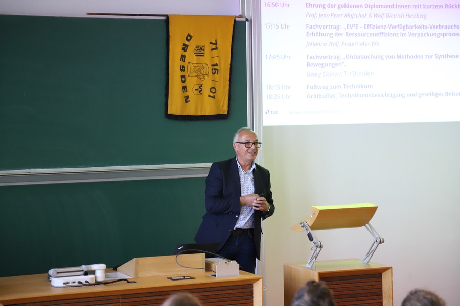 After a reception with coffee and pastries, Prof. Majschak welcomed the guests and gave an entertaining presentation on current developments at the Chair, the Institute of Natural Materials Technology and the Fraunhofer IVV in Dresden.