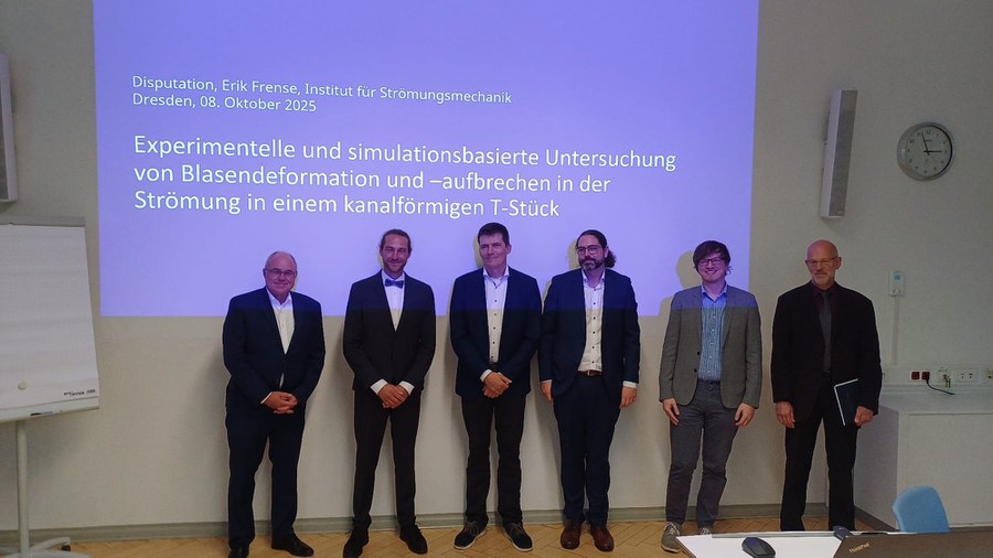 President of the jury was Prof. Dr. Pfifer, reviewers Prof. Dr. Fröhlich and Prof. Dr. Cierpka (TU Ilmenau), examiners Dr.-Ing. Heitkam and Prof. Dr. Haberstroh. Several former members of the institute participated in the event.