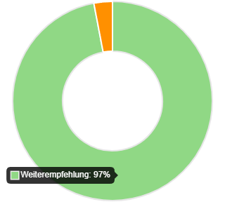 Weiterempfehlungsquote des Studiengangs auf StudyCheck anhand unabhängiger Bewertungen durch Studierende (Stand 16. Februar 2026)