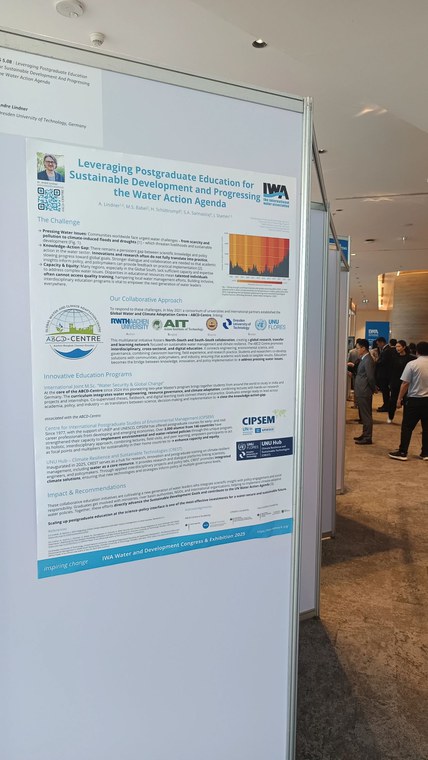 The Global Water and Climate Adaptation Centre (ABCD-Centre) is playing a central role at this year's IWA Water and Development Congress 2025 in Bangkok. The Centre is thus underlining its international importance and commitment to sustainable water and climate adaptation solutions.