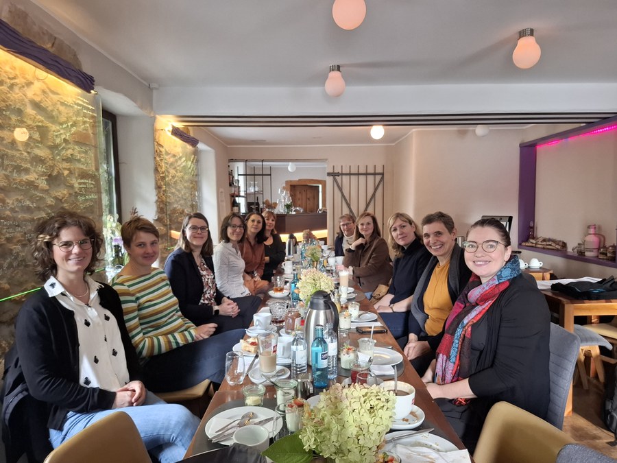 This time, the Women@DDc team (here: Katrin Saure/ TU Dresden and Dr. Patricia Grünberg/ Barkhausen Institut) was especially happy to welcome Junior Professors, Group Leaders, and Postdocs – bringing even more diverse perspectives to the table. The group talked about everyday challenges in academic life and shared ideas and strategies for navigating them.