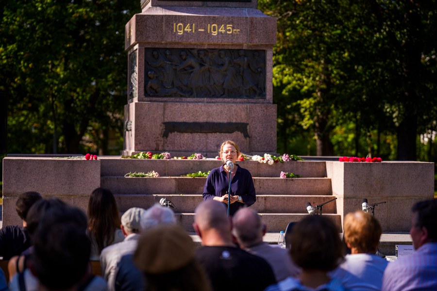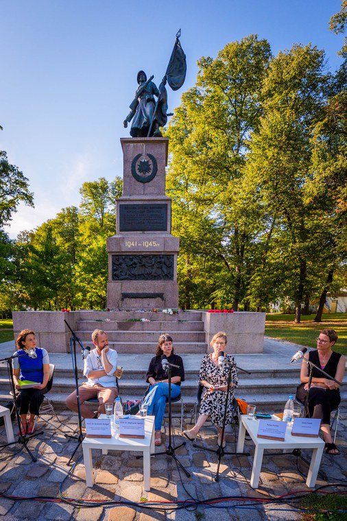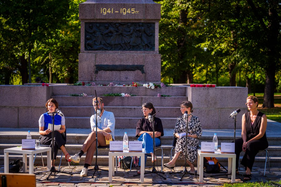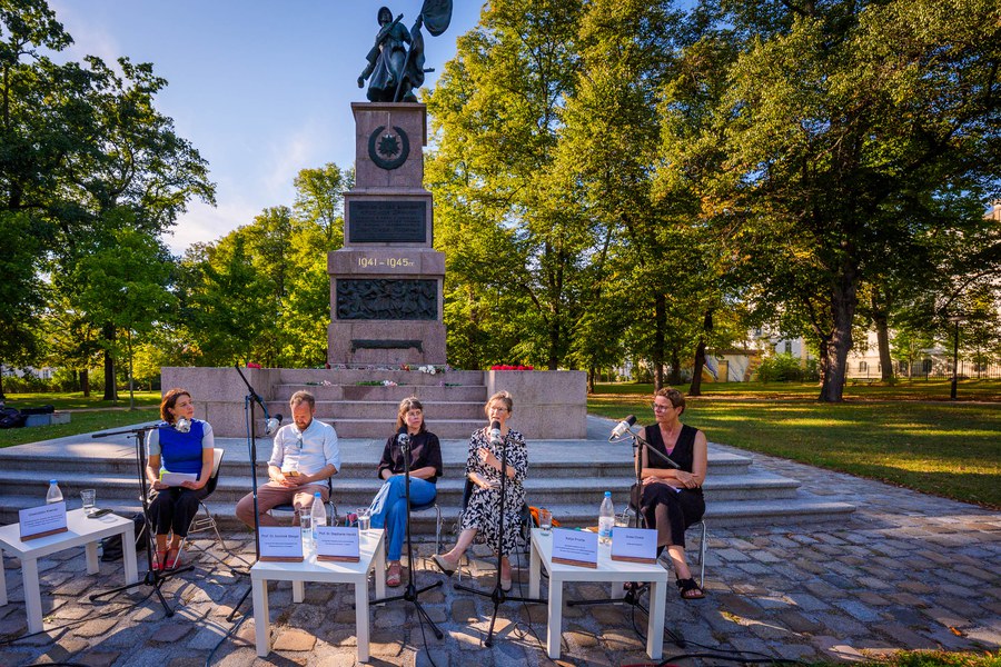 „Wurzeln des Erinnerns" ist eine Skulpturale Situation von Svea Duwe am Denkmal der Roten Armee. Einen Tag vor dem Weltfriedenstag lädt die Künstlerin Svea Duwe gemeinsam mit dem Podcastformat „YOU ASK we explain“ der TU-Dresden zum Denkmal der Roten Armee am Olbrichtplatz. Herzstück der Skulpturalen Situation ist die Präsentation eines invertierten Gedenkkranzes, in dessen Wurzeln Begriffe eingewachsen sind, die sich auf die russische Inschrift am Denkmal beziehen. Flankiert wird diese Präsentation durch eine offene Gesprächsrunde über die Frage „Wie ist Weltfrieden denkbar?“ mit Prof. Dr. Dominik Steiger, Prof. Dr. Stephanie Herold, Katja Protte und Svea Duwe, moderiert von Gwendolin Kremer. Den Abschluss bildet die Performance „Europas Hemd“ von Svea Duwe, interpretiert von Caroline Beach. Die Veranstaltung wird im Podcastformat „YOU ASK we explain“ der TU-Dresden aufgezeichnet.