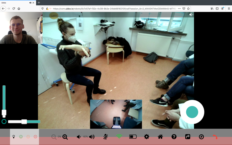 Wenn Studierende nicht in Präsenz-Lehrveranstaltungen anwesend sein können, z. B. bedingt durch Quarantäne, kann ihnen jetzt partiell eine Teilnahme ermöglicht werden. Benötigt werden ein Endgerät mit Tastatur/Maus, eine stabile Internetverbindung und ein TPR. Via Link schalten sich Teilnehmende auf den TPR, welcher mittels Maus oder Pfeiltasten gesteuert wird, so dass sich die Teilnehmenden mit Hilfe des Roboters in und zwischen den Lehrräumen bewegen können.