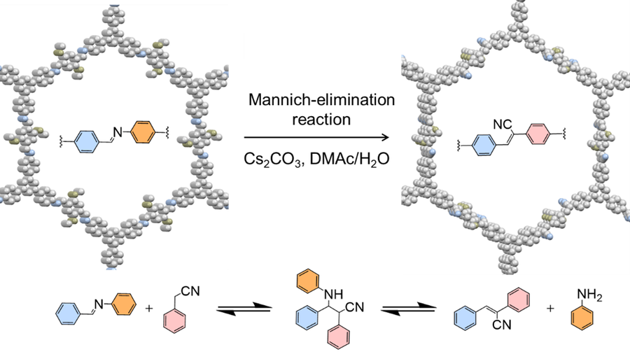 In a recent study published in Nature Chemistry, an international team of researchers has developed a new synthetic methodology, Mannich-elimination, towards single-crystalline two-dimensional poly(arylene vinylene) covalent organic frameworks. This work also showcases the synthesis of eleven highly crystalline 2D PAVs derived from corresponding 2D imine-COF (or 2D polyimine) precursors. Theoretical calculations and model reactions elucidate the reversible C=C bond formation driven by the Mannich-elimination reaction mechanism and its feasibility for developing crystalline 2D PAVs, further demonstrated crystallinity has a large impact on the charge transport properties, as exemplified by benzotrithiophene-based honeycomb 2D PAVs exhibiting charge mobilities 10 times greater than the amorphous 2D PAVs or their 2D polyimine counterparts.