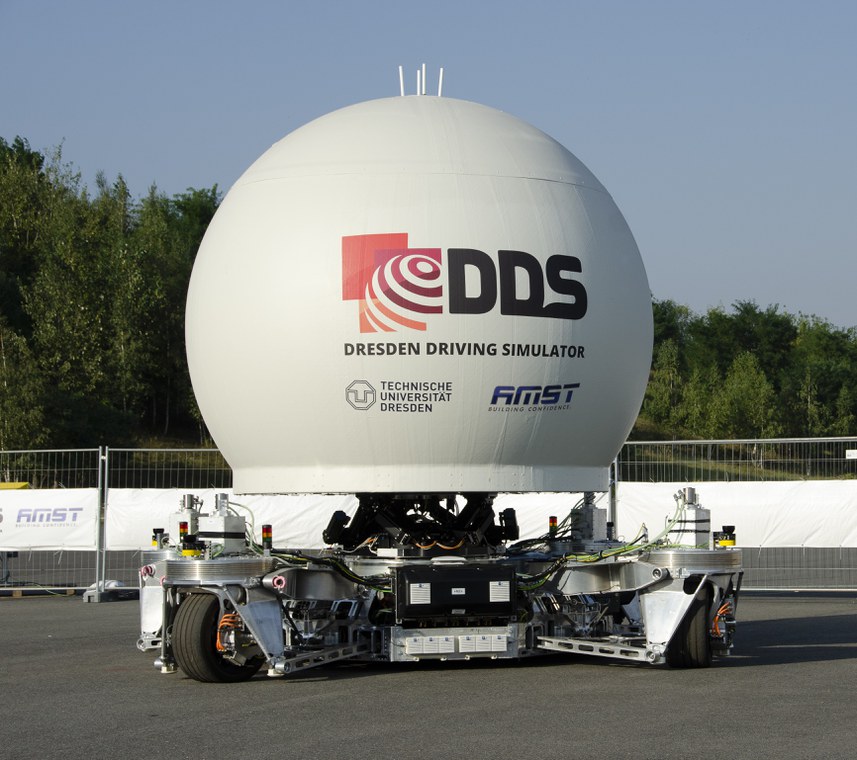 At the heart of the laboratory is a free-moving driving simulator - Dresden Driving Simulator (DDS). The highly immersive driving simulator expands these possibilities with a moving platform that generates realistic acceleration, cornering and complex maneuvers. It can be operated both stationary and on a large, specially equipped driving surface. Test subjects go through a structured process of preparation, test drive and follow-up questioning, which is accompanied and safety-monitored by trained personnel.