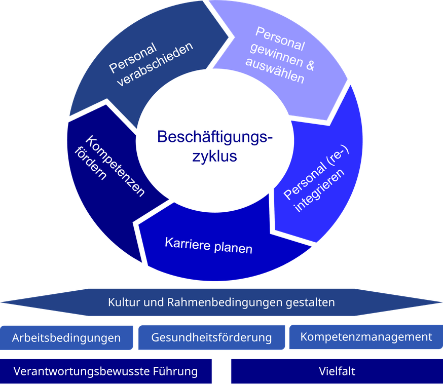 Gemeinsam bieten die verschiedenen Akteur:innen der Personalentwicklung ein breites Portfolio an zielgruppenspezifischen Angeboten und möchten damit ein motivierendes Arbeitsumfeld gestalten, in dem sich Führungskräfte und Mitarbeiter:innen bestmöglich entwickeln können. Das Personalentwicklungskonzept gilt hierbei als Rahmenpapier.