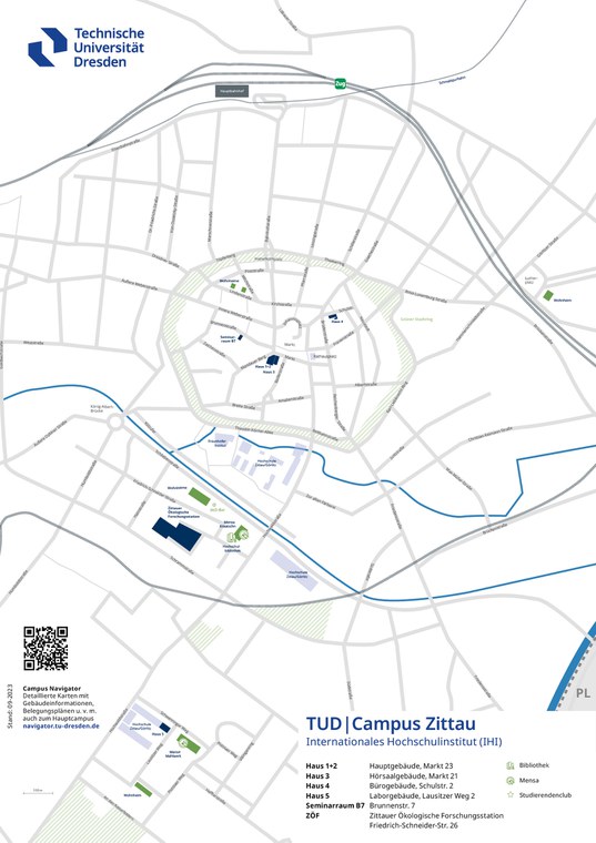 Dieser Lageplan zeigt den Campus in Zittau vom IHI – Internationales Hochschulinstitut Zittau.