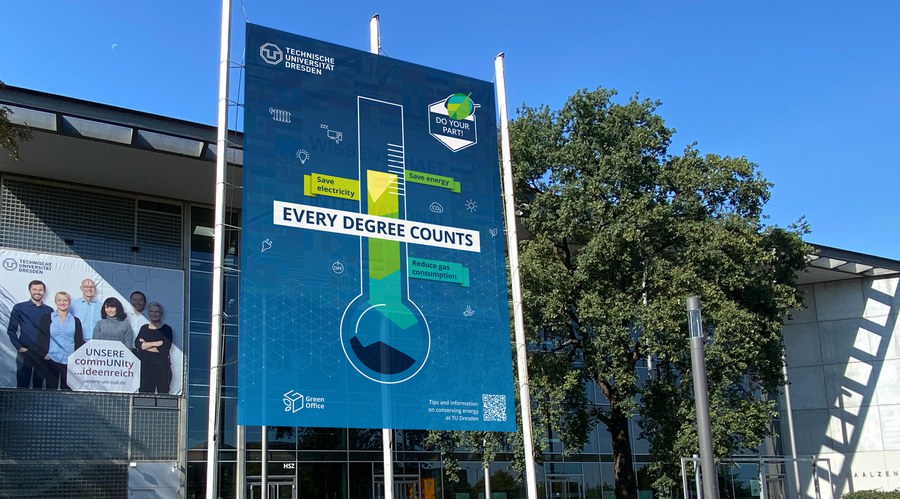 TU Dresden is doing its share to save energy with various measures. In the 2022/23 heating season, e.g. the regulation on securing short term energy supply was implemented. However, the top priority was to maintain teaching and research to the greatest possible extent and, in particular, to ensure face-to-face teaching. Based on the detailed evaluation of 29 representative building complexes, around 19% less district heating was required in the 2022/23 heating season compared to previous years.
