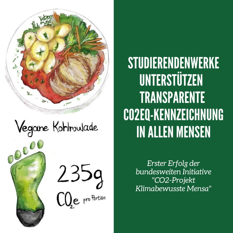 Auf der Mitgliederversammlung des Dachverbands "Deutsches Studentenwerk" (DSW) wurde das Projekt vorgestellt und schließlich beschlossen, die 57 deutschen Studenten- und Studierendenwerke bei einer Sichtbarmachung der CO2eq-Emissionen der Angebote in der Hochschulgastronomie zu unterstützen. CO2-Äquivalente fassen dabei alle klimaschädlichen Gase zusammen, die in ihrer Wirkung in der Einheit CO2eq zusammengefasst werden. Zuvor hatte die Initiative ihre Idee bereits dem Studierendenrat des DSW vorgestellt und traf dabei auf große Zustimmung und die Bereitschaft, zusammen die Kennzeichnung von CO2eq-Emissionen in allen Mensen voranzubringen. „Wir sind begeistert, dass wir gemeinsam mit dem Studierendenrat den Beschluss auf der Mitgliederversammlung des DSW eingereicht haben und diesem einstimmig zugestimmt wurde. Wir wollen bei der Umsetzung zukünftig eng mit allen Beteiligten zusammenarbeiten und freuen uns auf eine baldige Umsetzung in allen Mensen.", sagt Frieder Bönisch von der TU-Umweltinitiative Dresden.