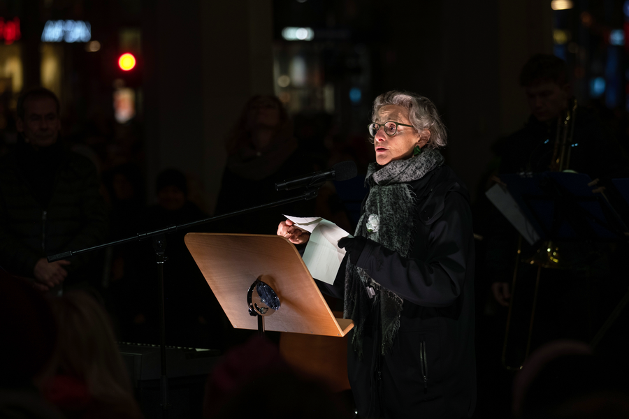 At 5:00 pm, numerous citizens gathered in front of Dresden's Kulturpalast for the traditional citizens' sing-along. In their speeches, Dresden's First Mayor Jan Donhauser, TUD Rector Staudinger, and Rachel Lancaster, Lord Mayor of the twin city of Coventry, emphasized the significance of February 13 as a day of remembrance, reflection, and shared responsibility for both democracy and human rights.