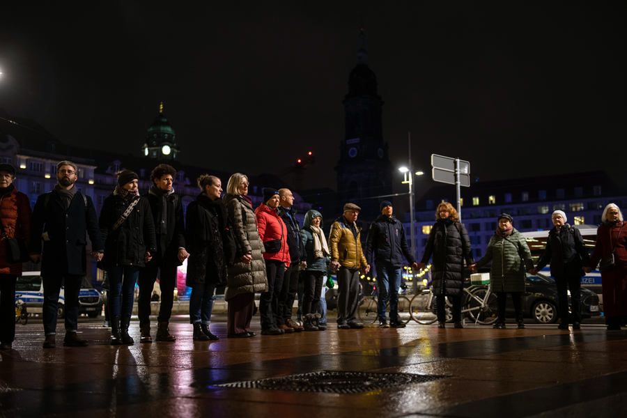 Several thousand people embraced Prof. Ursula M. Staudinger’s call to join hands for the human chain and the City of Dresden on February 13, 2026. At 6:00 pm, people in downtown Dresden joined hands and formed a chain—accompanied by the chimes of Dresden's church bells. This year's human chain was held under the motto “Take a stand – now and every day.”