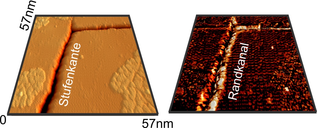 acting as electron channel, left: Scanning Tunnel Microscopy