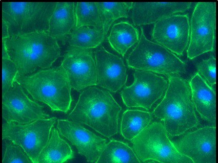 Fluoreszenzmikroskopische Aufnahme von Nierenzellen nach Americium-Aufnahme.