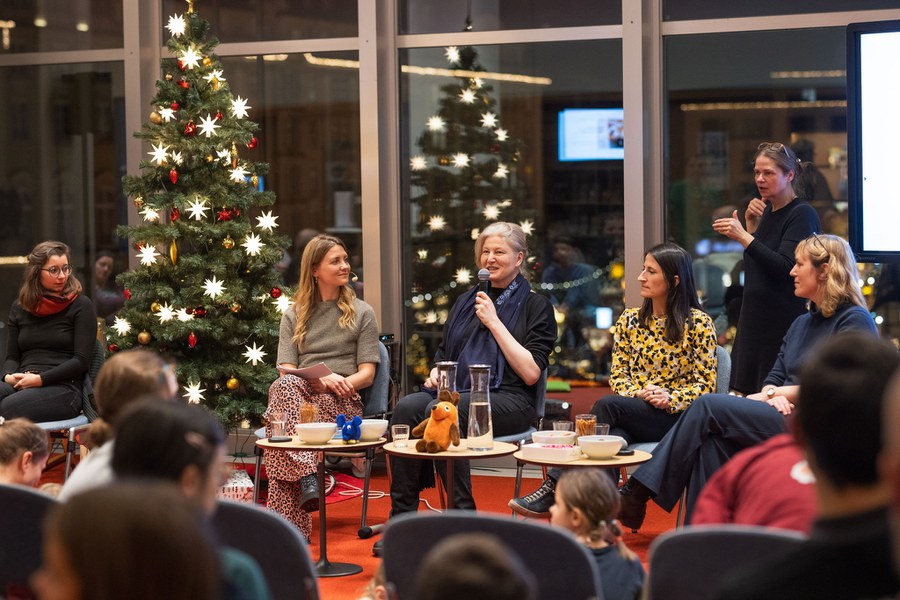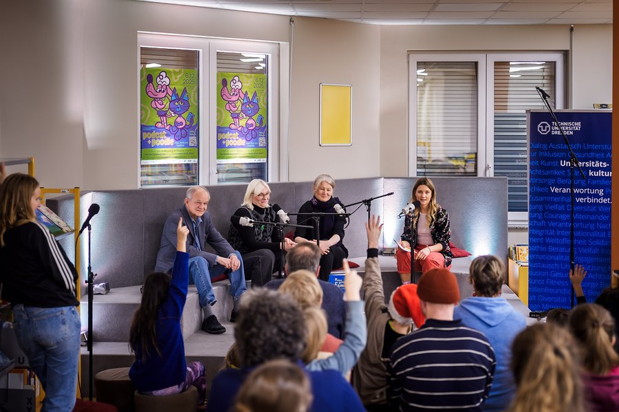 Mitten im Advent haben das Dezernat Universitätskultur und die Städtischen Bibliotheken Dresden zu zwei besonderen Veranstaltungen eingeladen. Gemeinsam mit Wissenschaftler:innen sind Kinder dabei über Generationen, Familie und Zukunftsfragen ins Gespräch gekommen. Jana Forkel, Moderatorin der Sendung mit der Maus, hat spielerisch durch den sprudelnden Ideenstrom geführt, während Autorin Gerda Raidt und Forschende der TUD mit dem jungen Publikum weiter ins Gespräch eingestiegen sind.