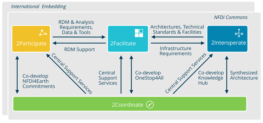 NFDI4Earth ist ein Konsortium der Nationalen Forschungsdateninfrastruktur (NFDI) mit dem Ziel, nachhaltige und FAIR-konforme Daten- und Servicelandschaften für die Erdsystemwissenschaften in Deutschland aufzubauen. Dabei werden sowohl technische Infrastrukturen als auch Dienste für den Zugang zu, die Integration und die Nutzung von Forschungsdaten adressiert.