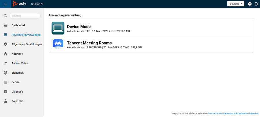 In unserem Fall musste die HP Poly Studio X70 erst einmal grundlegend geupdatet werden.