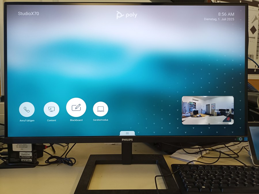 Nach Aktivierung des Gerätemodus sind die Komponeten im jeweiligen VC-Client des PCs/Laptops auswählbar. Wird dieser während einer Videokonferenz im Modus Poly beendet und dann wieder eingeschaltet, sind die Komponenten entsprechend nicht mehr verfügbar oder gleich wieder da.